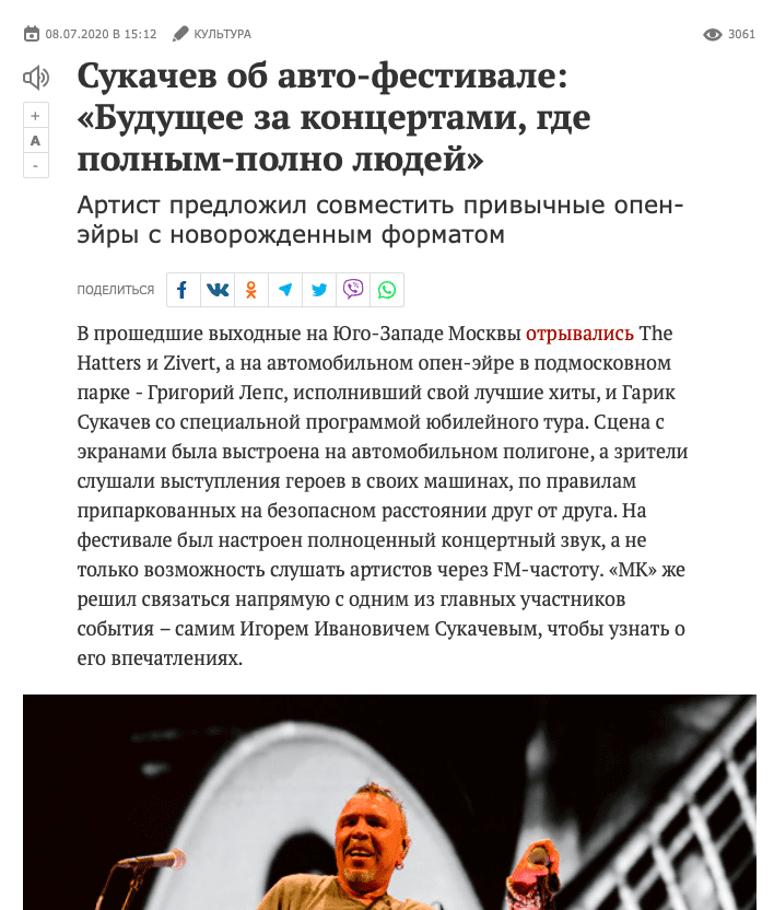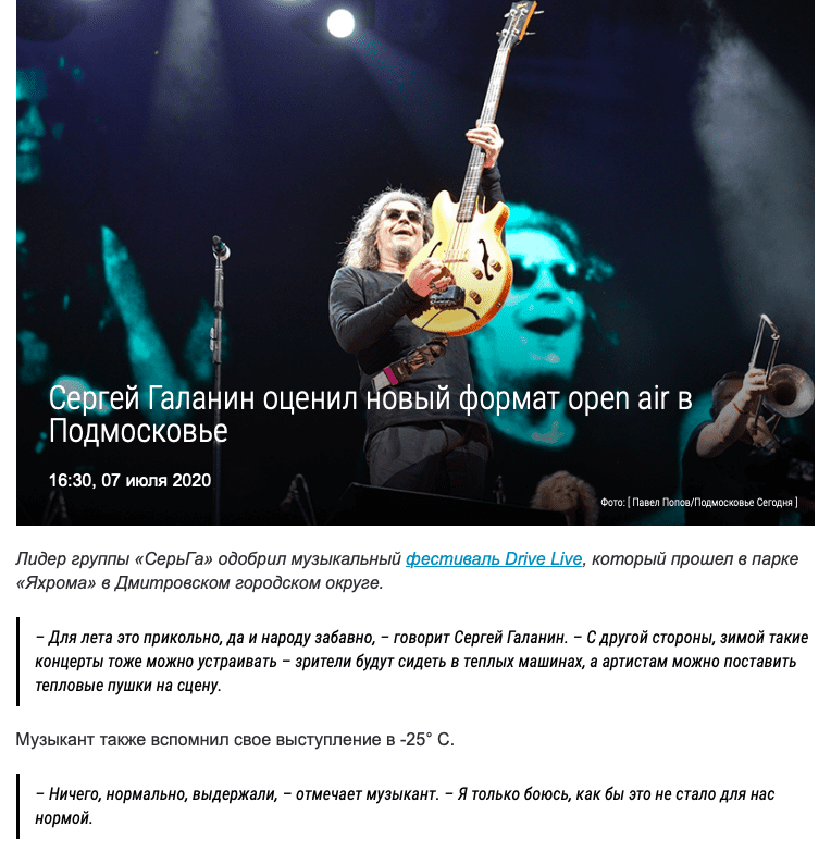 Автомобильный музыкальный фестиваль Drive Live в парке «Яхрома». День первый. Выступление Гарика Сукачева