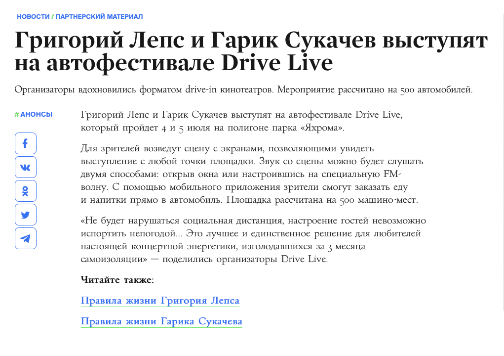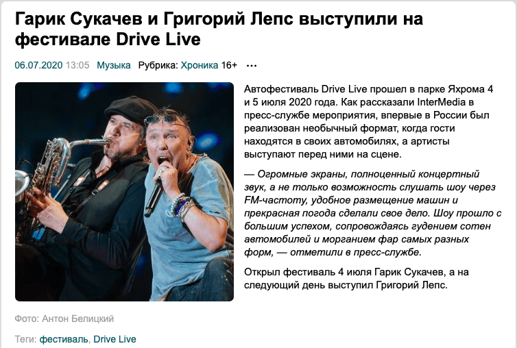 Фестиваль Drive Live c участием Григория Лепса