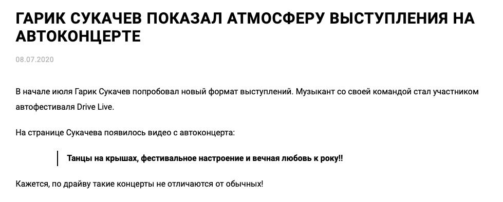 Фестиваль Drive Live с участием Гарика Сукачева