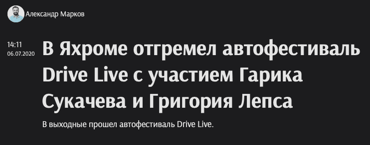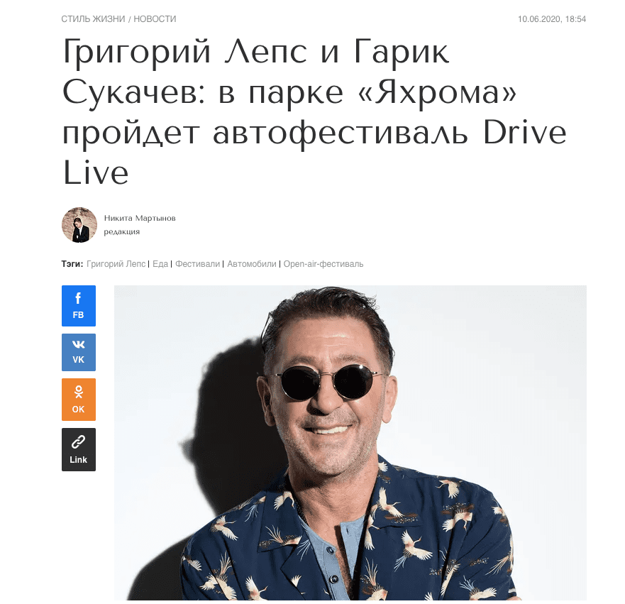 Григорий Лепс на автофестивале DRIVE LIVE в Яхроме